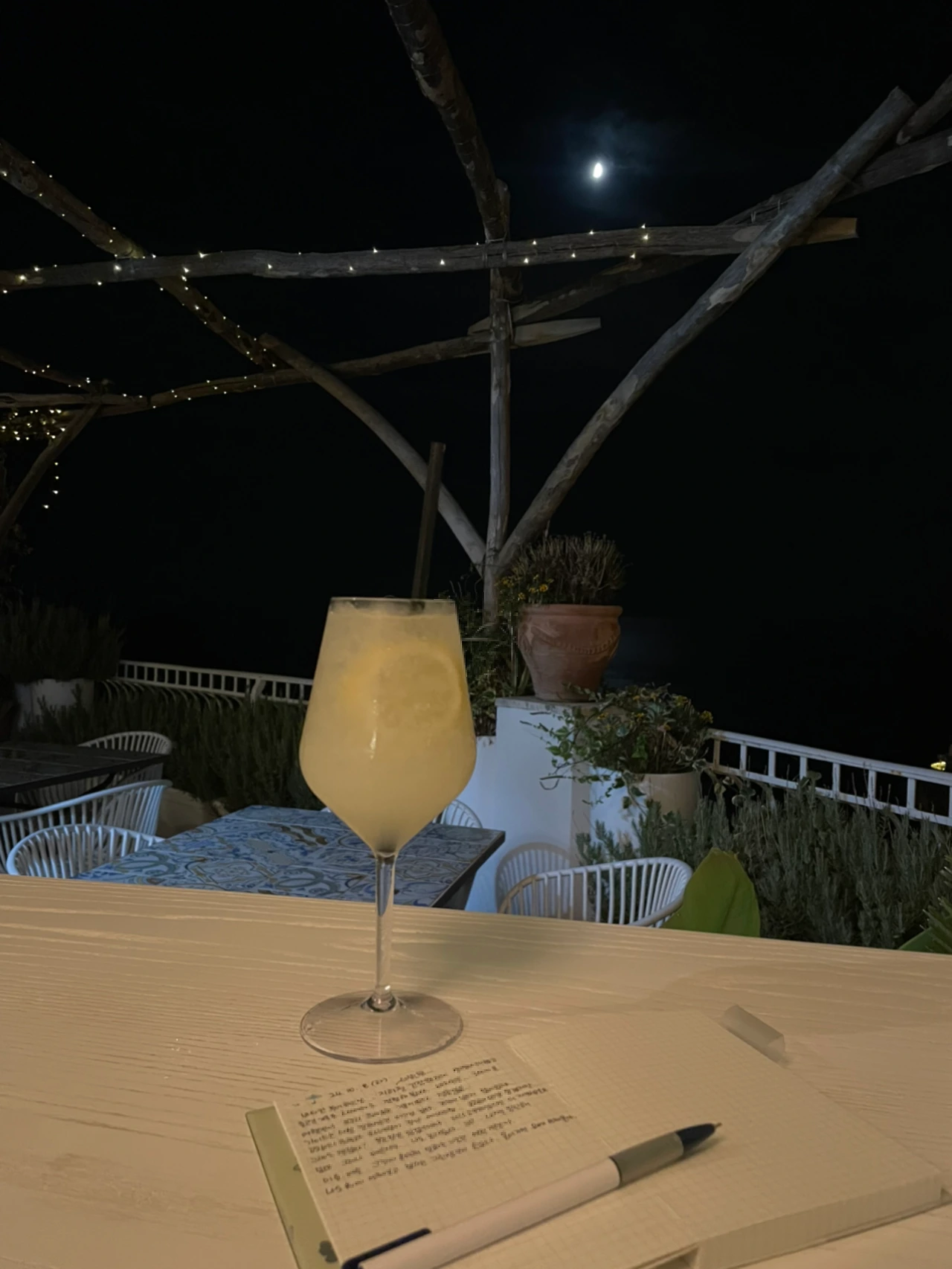 숙소 베란다에 앉아 포지타노의 노을이 스르르 물들기 시작하는 풍경을 바라보며 복숭아를 한입 베어 물었다. 달달하고 촉촉한 과즙이 입안 가득 퍼졌고, 빵 한 조각과 함께 밀린 다이어리를 천천히 써 내려갔다.