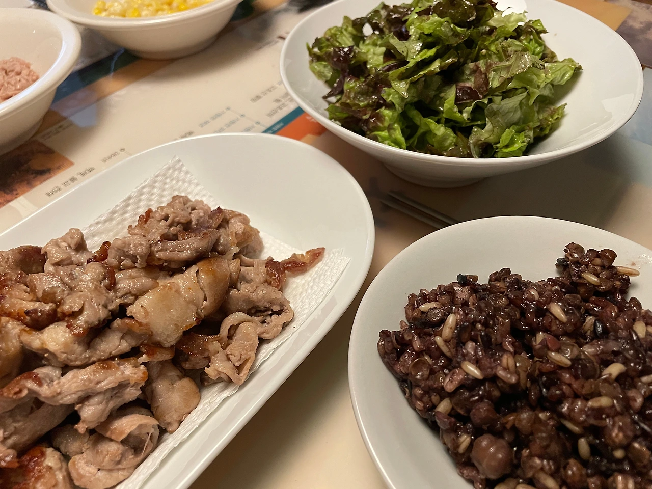 - 저녁은 아주 균형 좋고 “단백질+채소+적당한 탄수화물” 조합이 이상적.