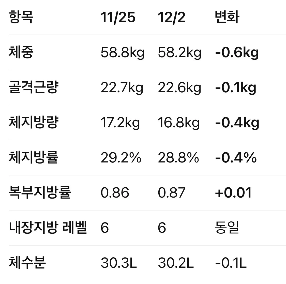 - 0.1kg은 인바디 오차 범위.