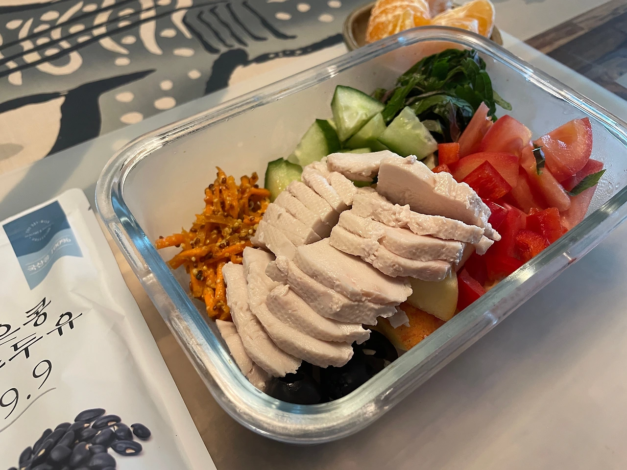 • 깻잎, 토마토 1/2, 오이, 당근라페, 사과, 파프리카, 양파후레이크