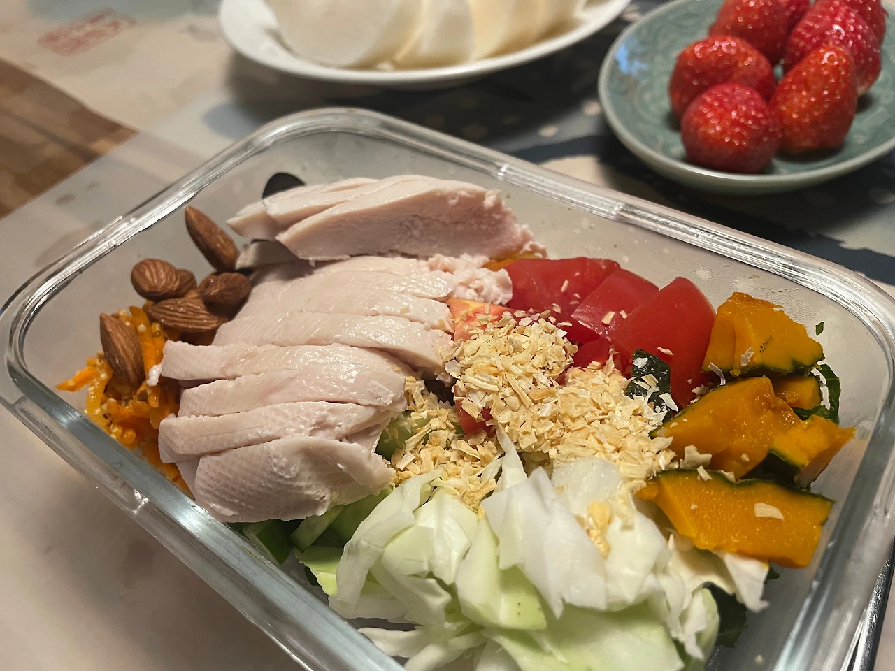 • 깻잎, 토마토, 오이, 당근라페, 양배추, 단감, 파프리카, 블랙올리브, 단호박, 양파후레이크