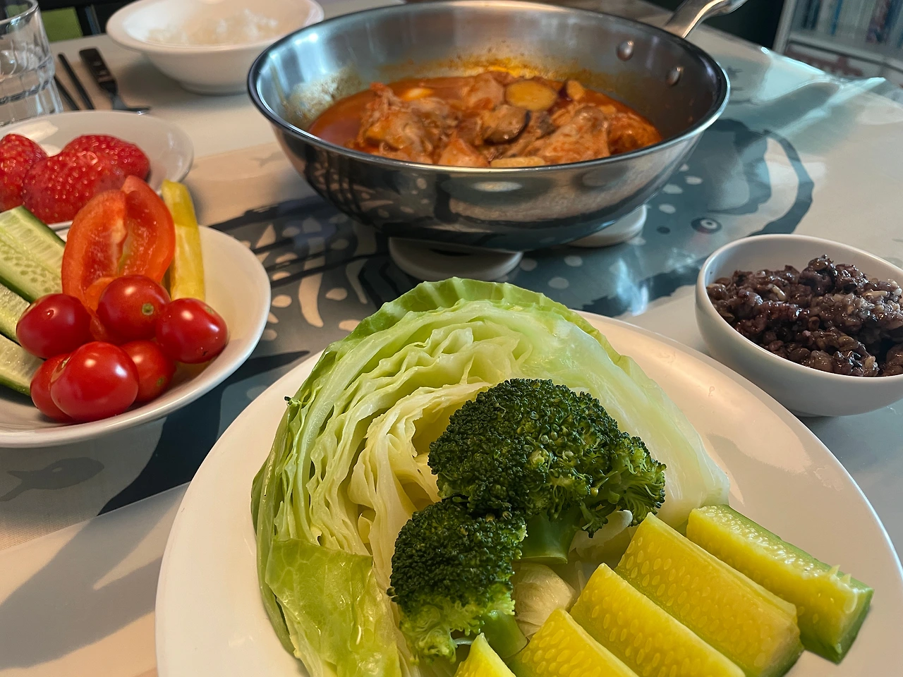 • 찐야채 다량 (양배추·애호박·브로콜리)