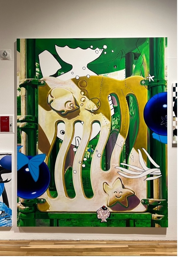 윤영빈의 ‘구멍’ 연작은 평면 위에 뚫린 구멍을 통해, 우리가 보는 것과 보이지 않는 것에 경계를 질문하고 있다. 어린 시절 뛰어놀았던 놀이터에서 찾은 구멍은 관람객의 추억을 떠올리게 한다. 잘 그려진 그림에서 오는 현장감도 느껴진다. 우리 주변에 항상 있지만 유심히 들여다보지 않는 구멍에서 추억을 떠올리고, ‘구멍’에서 안의 세계를 상상하게 한다. 이렇듯 볼 수 있는 것과 볼 수 없는 것에 대한 이야기를 하고 있다.