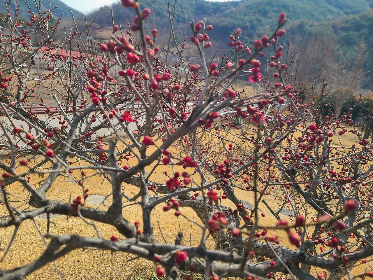 해 질 녘에 사형부부를 배웅하며 화가가 언제 또 이렇게 해 줄 것이냐고 물었더니 따뜻한 봄날, 늦봄에 해 드리겠습니다~한다. 뜰의 홍매화 곁을 지나며 꽃이 활짝 피면 사진을 찍어서 보내달라는 부탁을 했더랬다. 홍매화 꽃이 피고 있다. 봄이 문턱에 왔다.