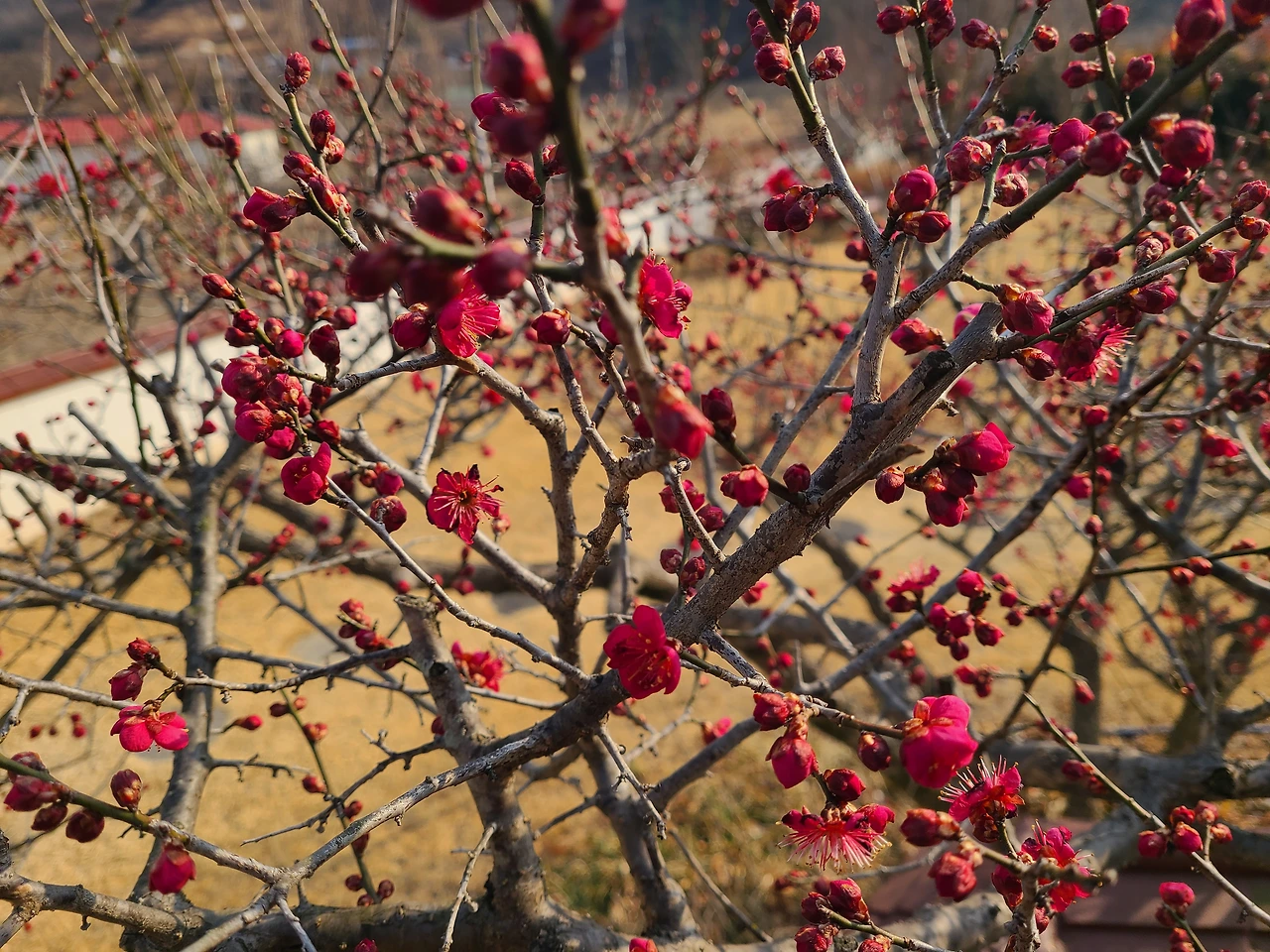 집에 도착하자마자 우주복을 입고 닭장으로 갔다. 날이 따뜻해져서 물통의 물이 얼지 않아 달걀을 꺼내고 모이만 주면 되기에 일이 수월하다. 닭들이 알을 더 낳았고 알통에 앉아있던 백봉오골계를 조심스럽게 밖으로 옮겼더니 다시 들어가겠다고 보챈다. 봄이다. 홍매가 꽃을 더 많이 피웠다.