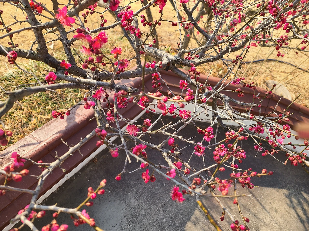닭장에서 알을 거두고 오며 홍매화 사진을 찍었다. 지난해 이맘때는 한송이만 피었는데 올해는 봄이 빨리 다가온다. 겨울 점퍼를 입었더니 차 안에서 땀이 송송 났더랬다. 휴게소에서 기름을 보충해 준 화가가 이제부터 차 안에 히터를 틀지 않아도 되니 기름값이 적게 들겠단다.