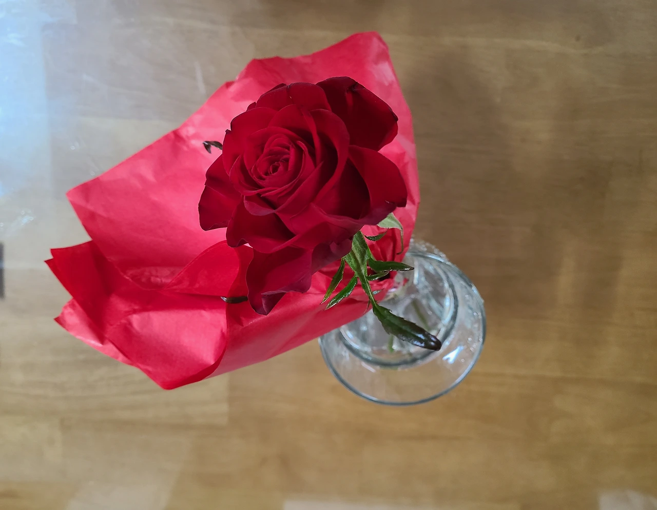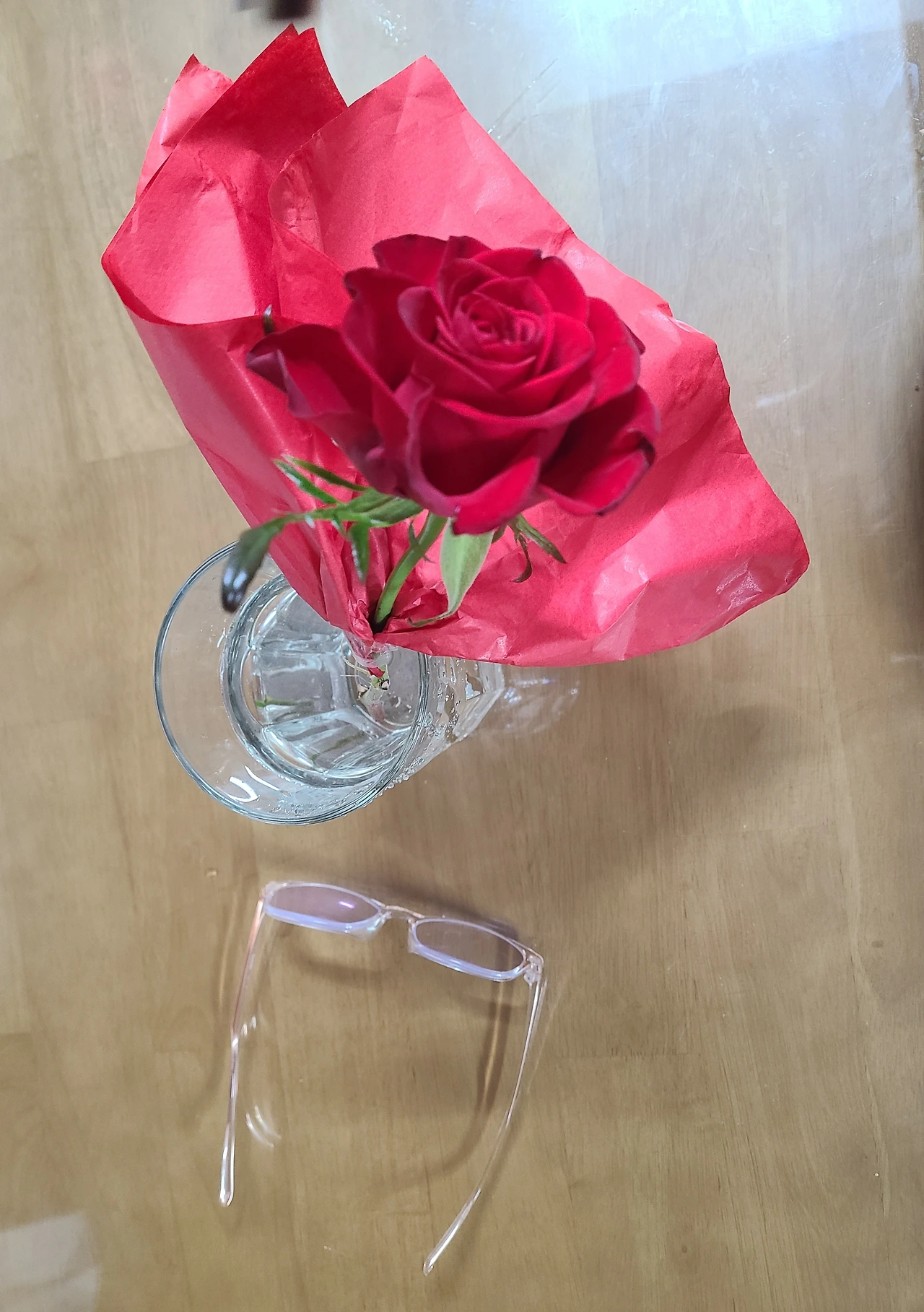 엘지전자 매장에서 매니저가 종이팩에 들어있는 오렌지 주스 두 개와 장미꽃 한 송이를 선물해 주었더랬다. 저녁 설거지를 마치고 물 담긴 유리컵에 장미꽃을 옮긴 뒤에 사진을 찍어 감사메시지와 함께 보냈다. 친절하게 응대해 주고 알맞은 제품을 추천해 주어 참 고마웠기에 설문에 최고점을 주었다고 했다.