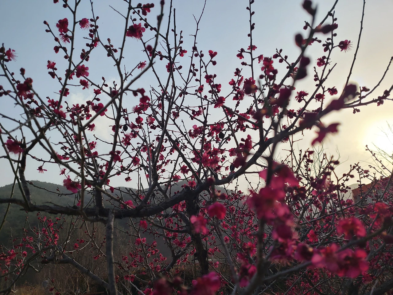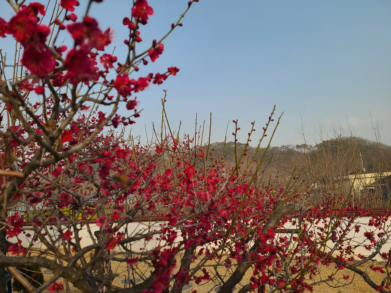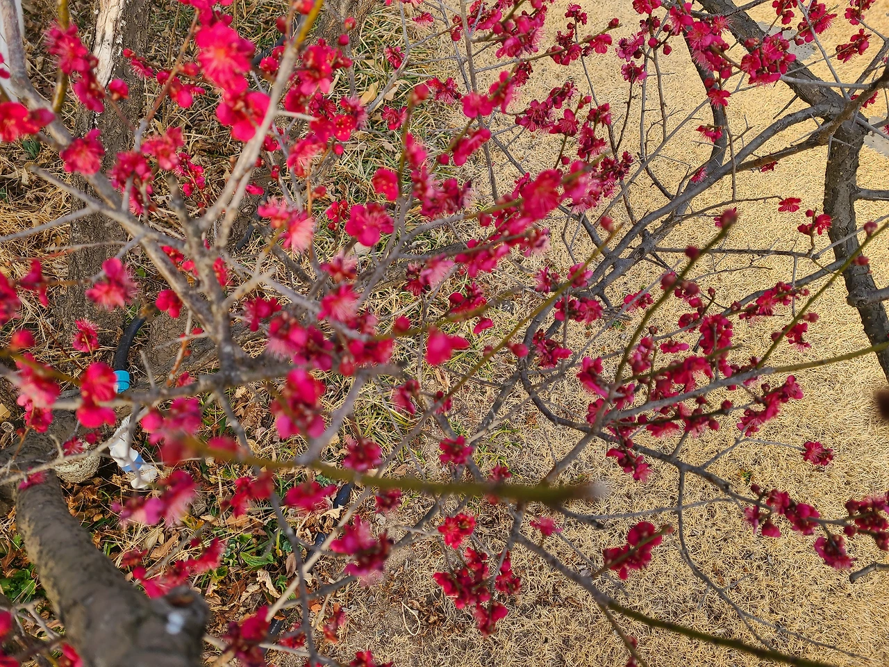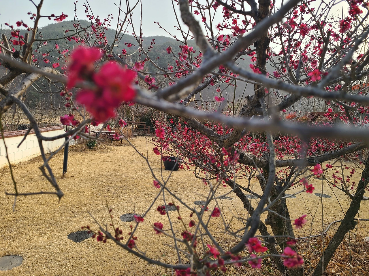 닭장에서 알을 꺼내오고 나서 활짝 핀 홍매화를 배경으로 봄노래를 불렀다. 봄봄봄봄 봄이 왔어요~ 우리의 마음속에도~ 봄봄봄봄 봄이 왔어요~ 봄이 왔어요~