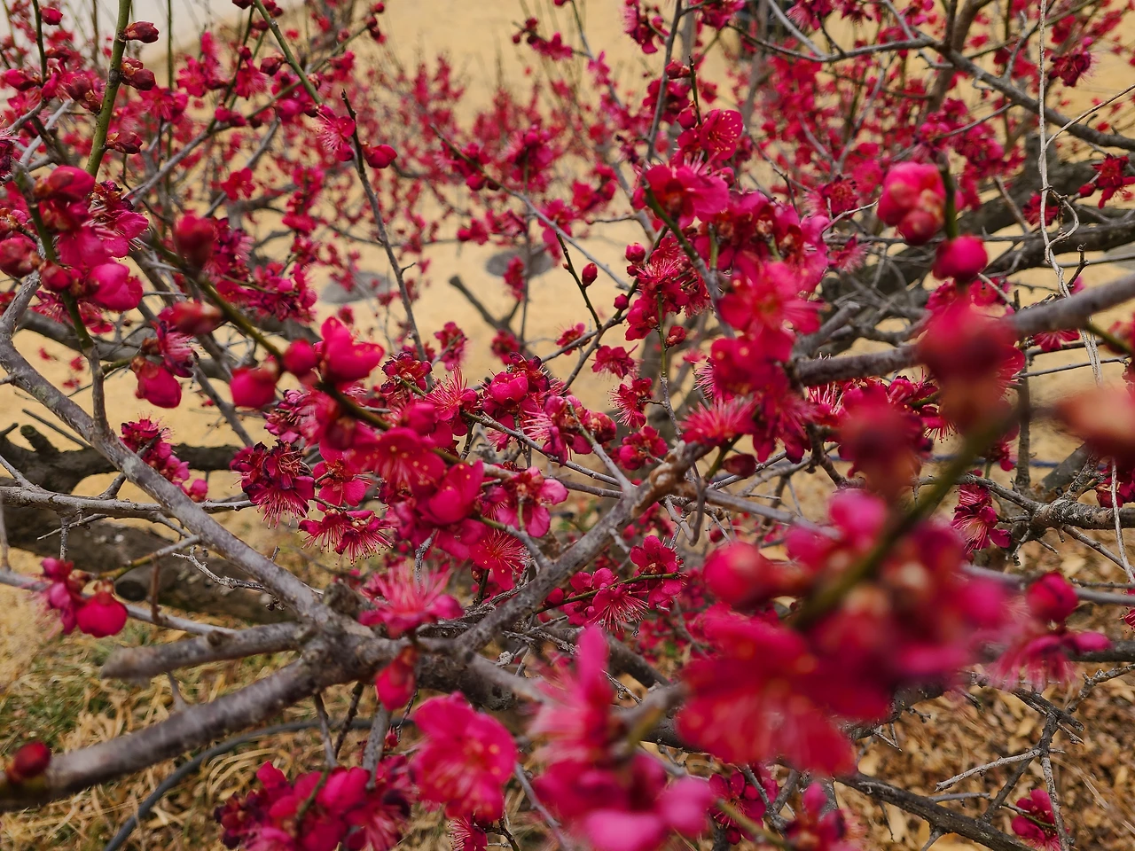 아침에 홍매화를 배경으로 찬송가를 불렀다. 만물이 소생하는 봄날이 되니 지으신 이를 찬양하지 않을 수가 없다. 새들도 노래하고 닭이 코러스를 넣었다.