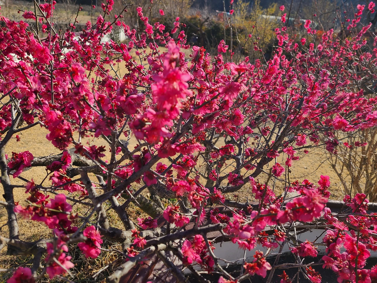 홍매화를 바라보며 개여울 노래를 부른다. 아득한 옛날 우리 집 앞을 가로질러 흐르든 도랑물 소리가 그립다. 단발머리 소녀가 졸졸졸 물소리 따라가며 도랑가의 노란 개나리에 눈이 부셨다.