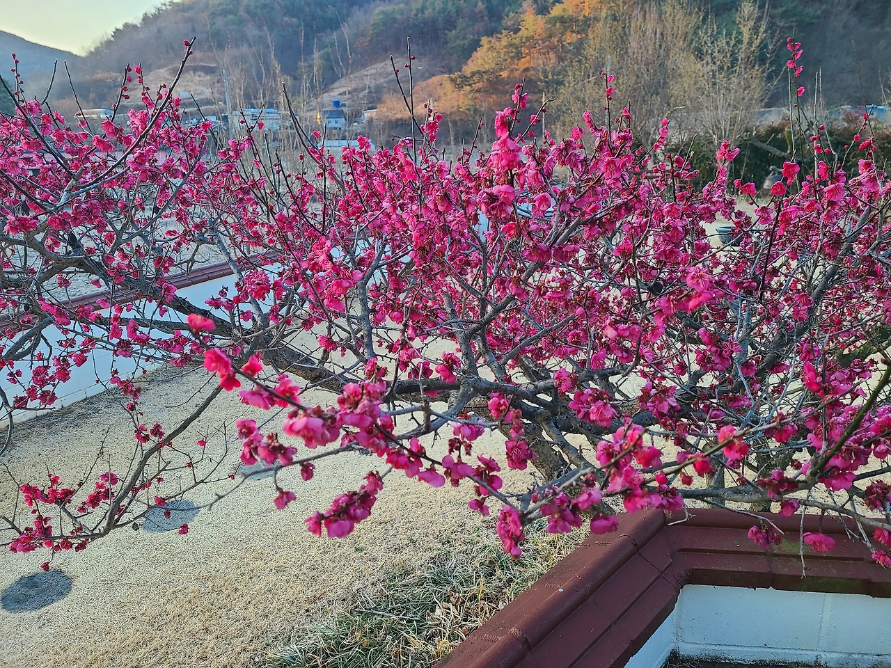 현관문을 열고 나갔더니 찬바람이 얼굴을 덮었다. 팔각정 테이블이 하얗게 질리고 홍매화가 오들오들 떨고 있다. 영하 6도란다. 겨울이 다시 오고 있나 보다.