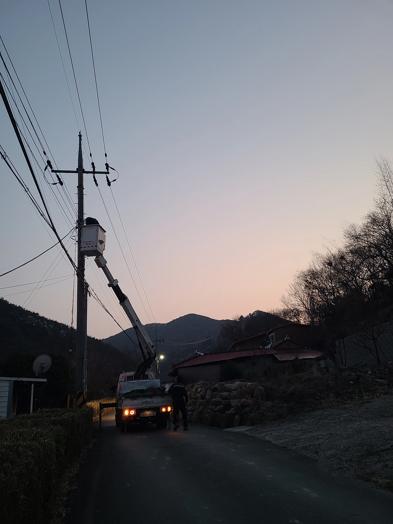 집안은 어둠에 휩싸이고 바깥은 어스름 빛이 남아있는 개와 고양이의 시간에 전기기사 두 사람이 도착했다. 전선 두 개가 나갔단다. 전봇대에 올라서 고치는 모습을 사진에 담았더니 아래에 있던 이가 아차, 사진을 안 찍었네, 전화기를 꺼내어 사진을 찍는다. 웃는다.