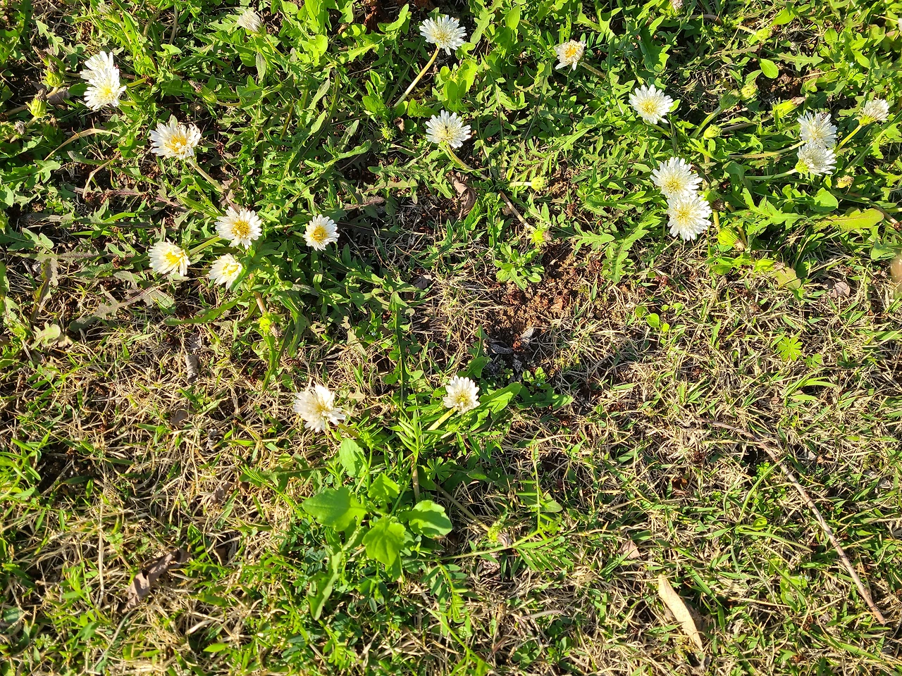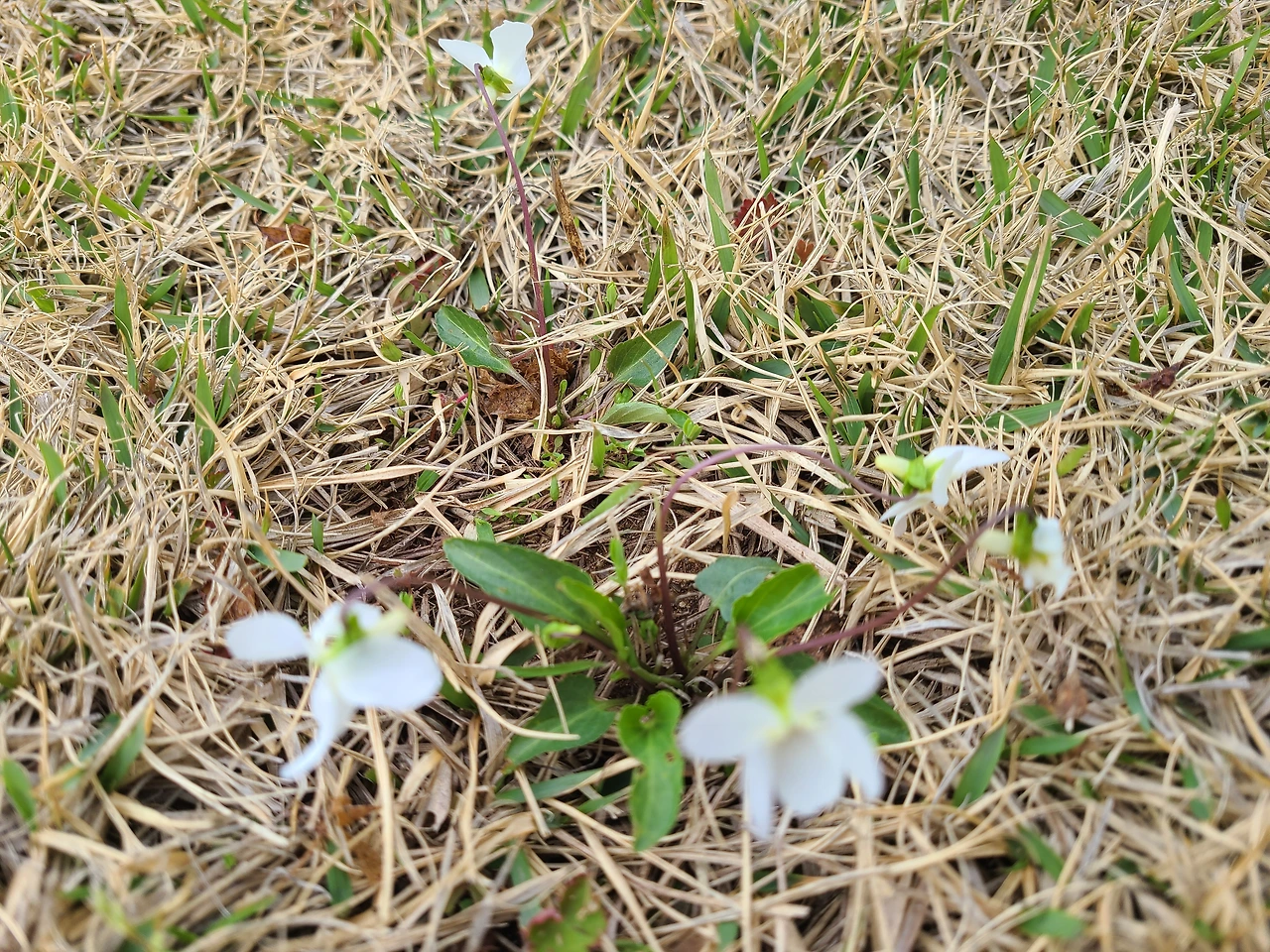 점심설거지를 끝내고 잠깐의 낮잠을 즐긴 뒤에 달걀을 꺼내어 별관 안에 넣어두고 잔디에 나 있는 토끼풀 뽑기를 시작했다. 동백나무와 장의자 사이에 나 있는 토끼풀을 뽑다가 하얀 제비꽃을 발견하고 사진으로 담았다. 제비꽃은 잔디밭에서도 보호받는 유일한 꽃이다.