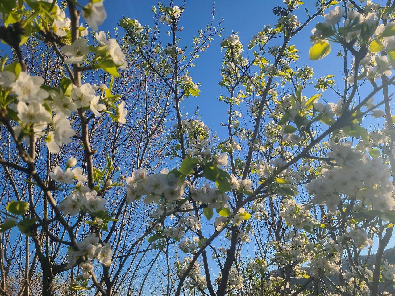 튤립이 꽃을 피우는 중이다. 닭장 옆의 배나무가 하얀 꽃을 매달아서 사진으로 담고 배꽃을 배경으로 찬송가를 불렀다. 이화(梨花:배꽃~)에 월백(月白)하고~ (중략) 다정(多情)도 병(病)인 양 잠 못 들어하노라~