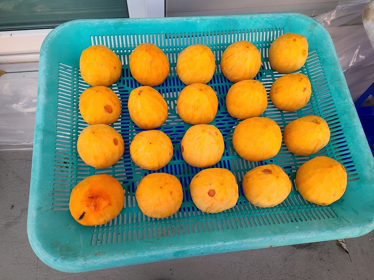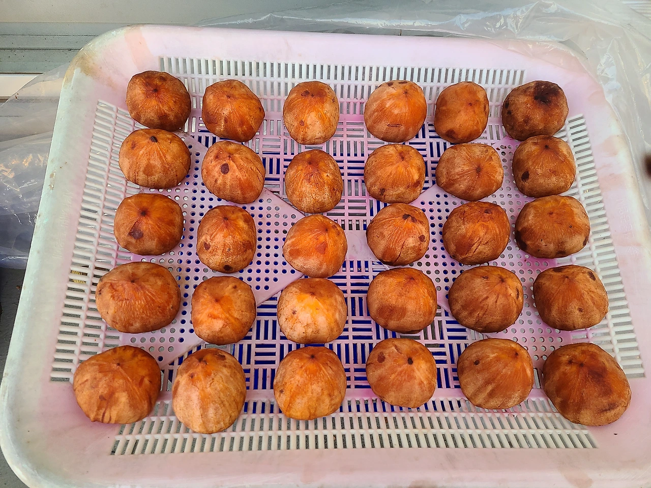 곶감으로 말리고 있는 대봉감의 크기가 줄어들어서 다시 배치를 했더니 채반하나가 온전히 남았단다. 선선한 바람이 불고 따끈한 햇살이 쏟아지니 곶감 말리기에 딱 알맞다. 한 주 동안 비소식이 없어서 더욱 맛난 곶감이 될 거다.