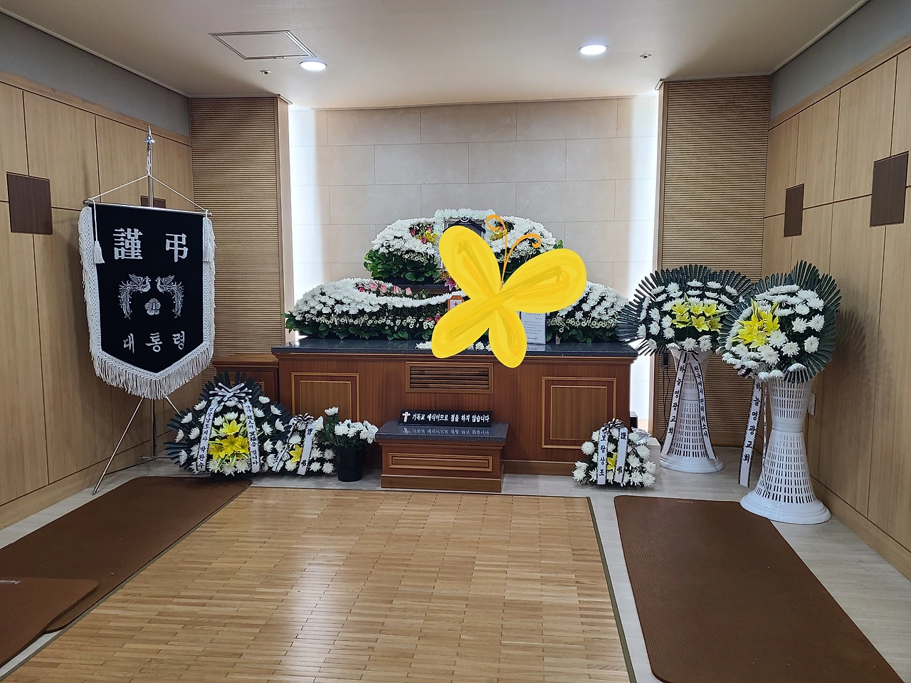 국가가 큰오빠의 희생을 잊지 않겠단다. 미국에서 조카가 귀국을 하고 난 다음날 훈장과 포장으로 장식한 정복을 입은 조문객들이 도지사 명의로 된 조문 꽃바구니를 들고 와서 조문행사를 했다. 대통령 명의의 조기는 조카가 오기 전에 일찍 가져와서 세워놓았다.