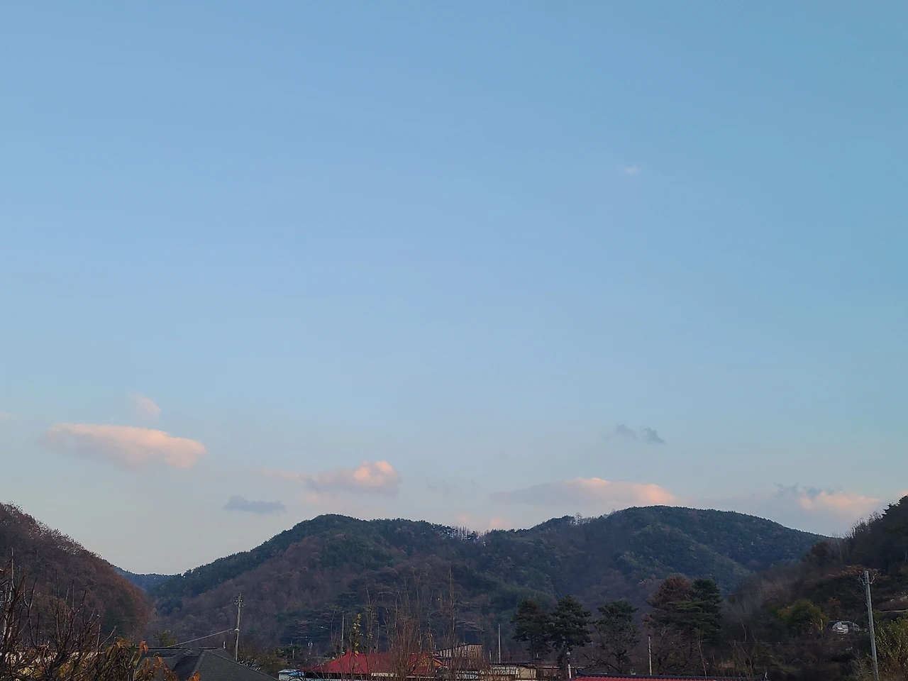 일기예보가 수시로 바뀐다. 11시부터 한 시간 동안 비가 내린다고 했지만 화가가 목욕을 가기 전에 말리고 있는 곶감 위에 비닐을 덮어주었더니 살포시 비가 내리다가 그쳤다. 11시가 되기 전에 본격적으로 비가 내리더니 80% 비가 내린다는 12시에는 구름 속에서 해님이 밖으로 나와서 방긋 웃는다. 화가가 비닐을 걷었다.