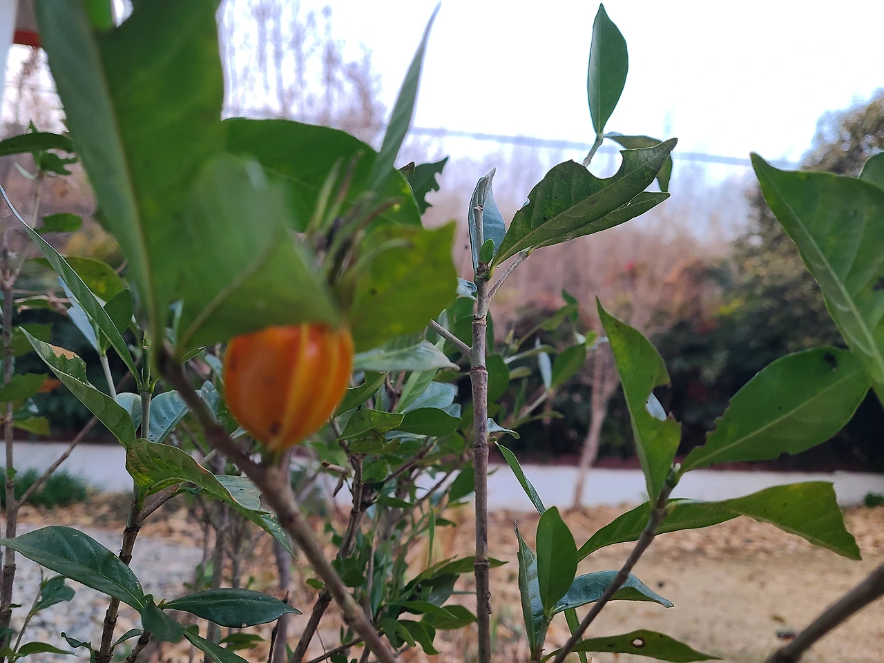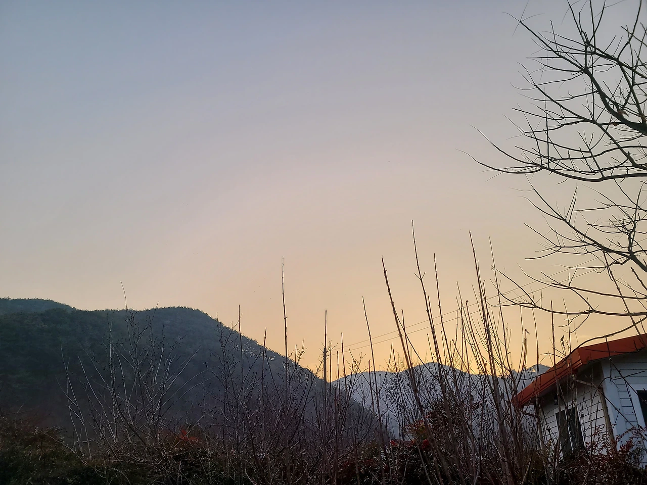 화단의 치자나무에 빨간 열매 하나가 달려있다. 올해는 치자열매를 보지 못하는 줄 알았는데~반갑다. 서산으로 넘어간 해가 남긴 노을을 사진으로 담고 그네옆의 풍경도 찍었다. 아침에는 일어나자마자 두꺼운 옷을 입고 모자를 비스듬히 쓴 모습을 사진으로 찍었더랬다.