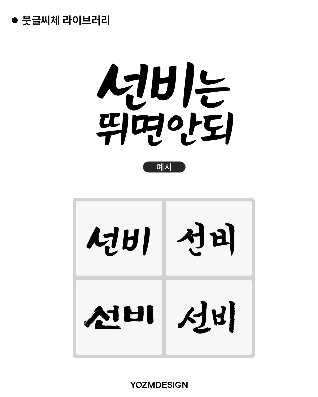 ✔︎ 감성 있는 붓글씨체: 섬세한 붓글씨 폰트로 해당 콘텐츠의 무드를 전달합니다. 시집, 역사 콘텐츠 제작에 활용도가 높겠네요.