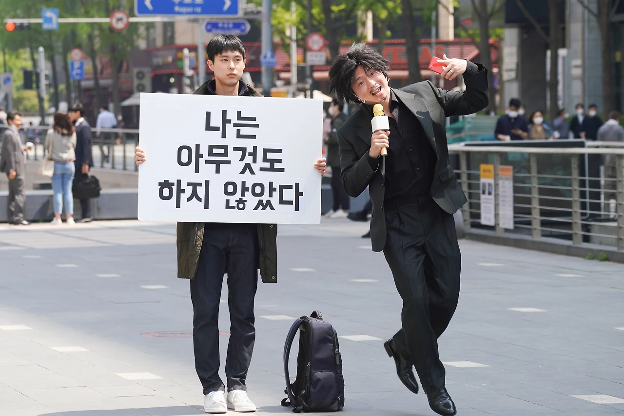 막장이 통하는 유튜브 세계에서 그의 막장 전략은 성공적이었고 순식간에 구독자는 76명에서 1만 명으로 늘었다. 이를 기념하고자 켠 라이브 방송. 그를 예의주시하던 한 구독자가 1000만 원이라는 거금을 대가로 청계광장에서 매일같이 ’나는 아무것도 하지 않았다‘라는 문구의 피켓을 들고 있는 일명 ’피켓남‘의 사연을 알아올 것을 제안한다. 생면부지에 행위예술이라도 하듯 아무런 말도 표정도 없는 그로부터 이야기를 듣는 것은 불가능에 가까운 일이지만 돈은 많은 것을 가능케 하는 법. 끈질기게, 간절하게 그러다 뻔뻔하게. 그의 사연을 하나둘씩 캐고 주작까지 곁들이며 유튜브는 속칭 ‘떡상’부터 ‘나락’까지 오르고 내린다.