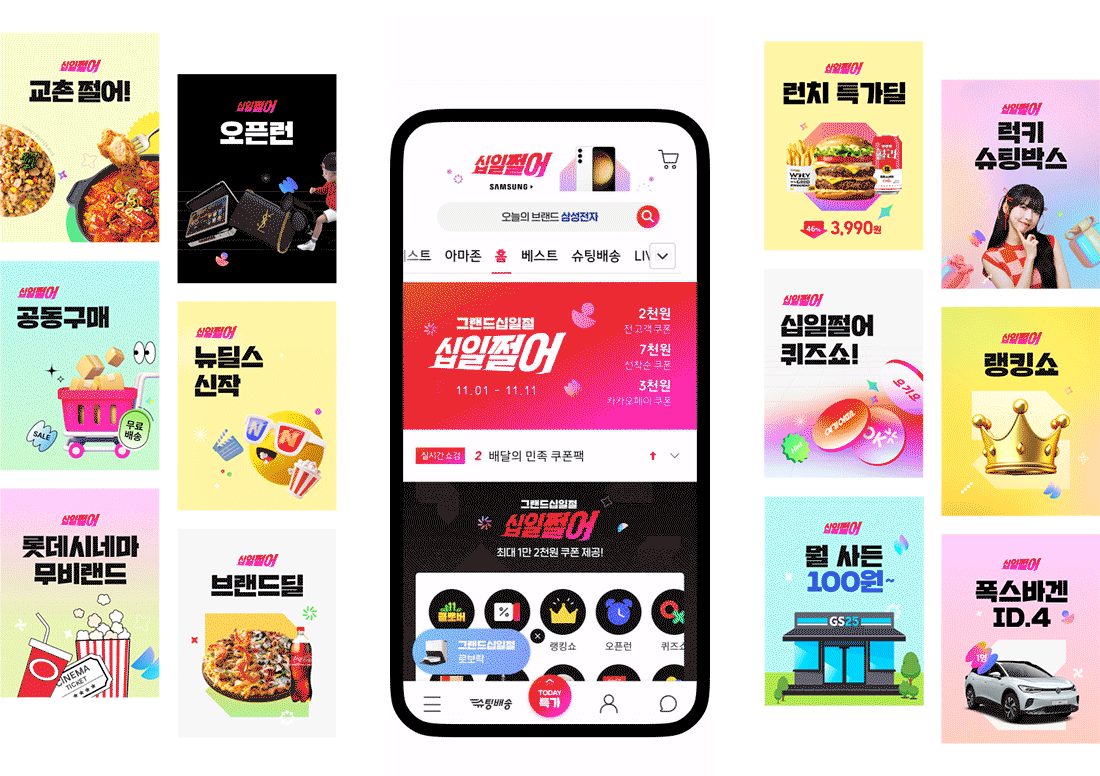 브랜드 딜, 공동구매 등 그랜드 십일절과 연계되는 주요 프로모션과 디자인 결을 맞추는 작업을 진행합니다.