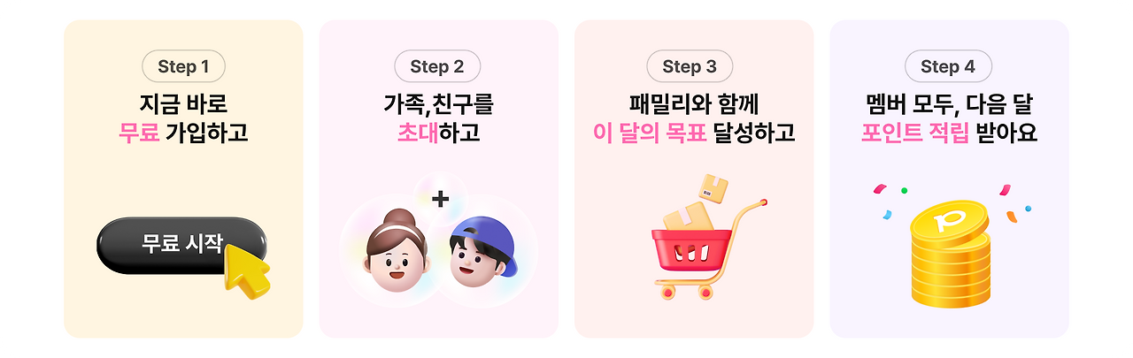 패밀리가 되어 목표를 달성하면 포인트 혜택을 받아요!