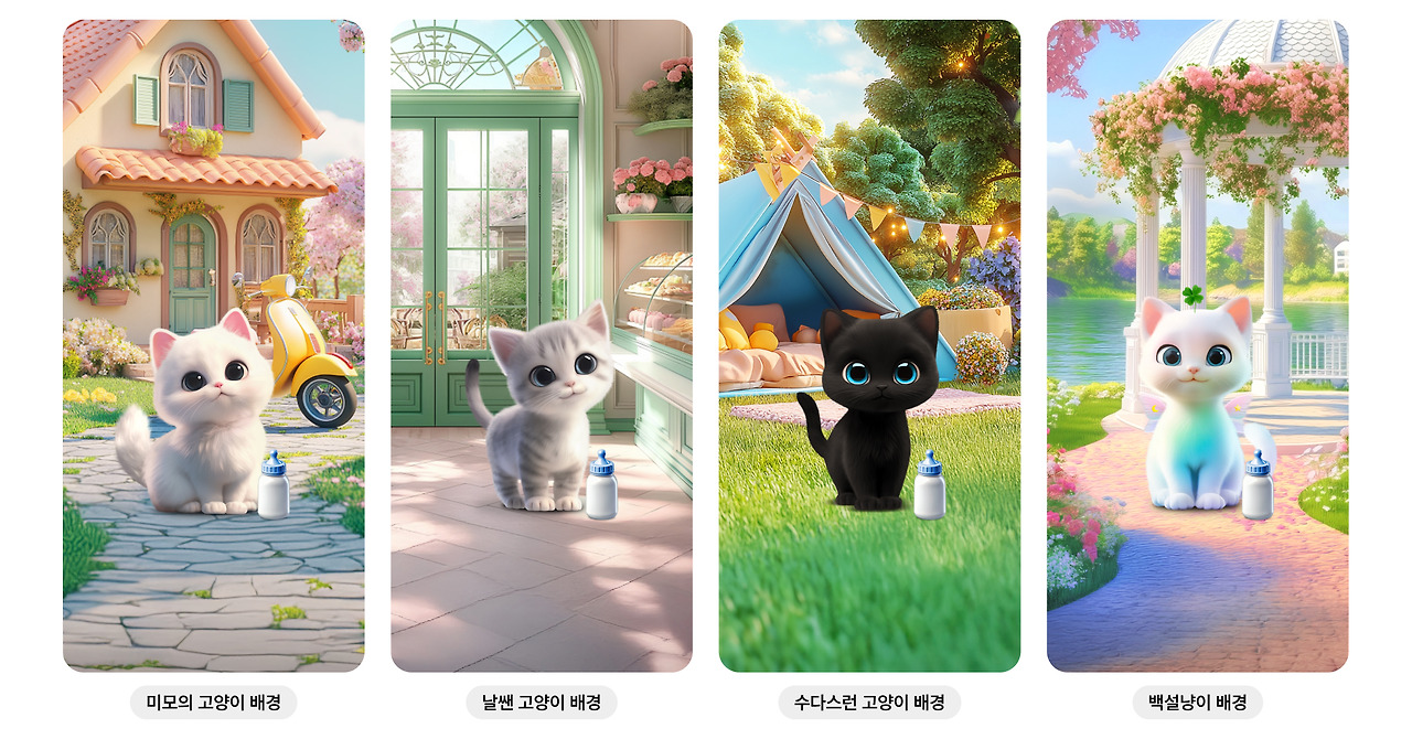 시즌2에서는 시즌1에서 만나보았던 캐릭터 중 4마리를 선별해, 사용자가 직접 키우고 싶은 고양이를 선택할 수 있도록 구성했습니다. 특히 시즌 1에서 보기 힘들었던 마지막 히든 고양이! ‘행운 고양이’인 백설냥이도 이번 시즌에는 직접 선택할 수 있게 되었습니다.