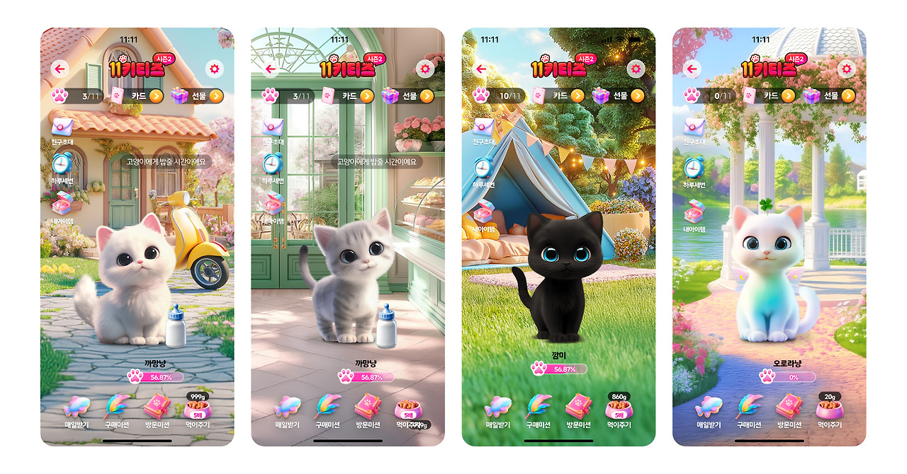 돌이온 11키티즈 시즌2는 어떻게 달라졌는지, 새로워진 메인 UI,게임 배경, 아이템, 이펙트 효과까지 제작 과정을 소개합니다.