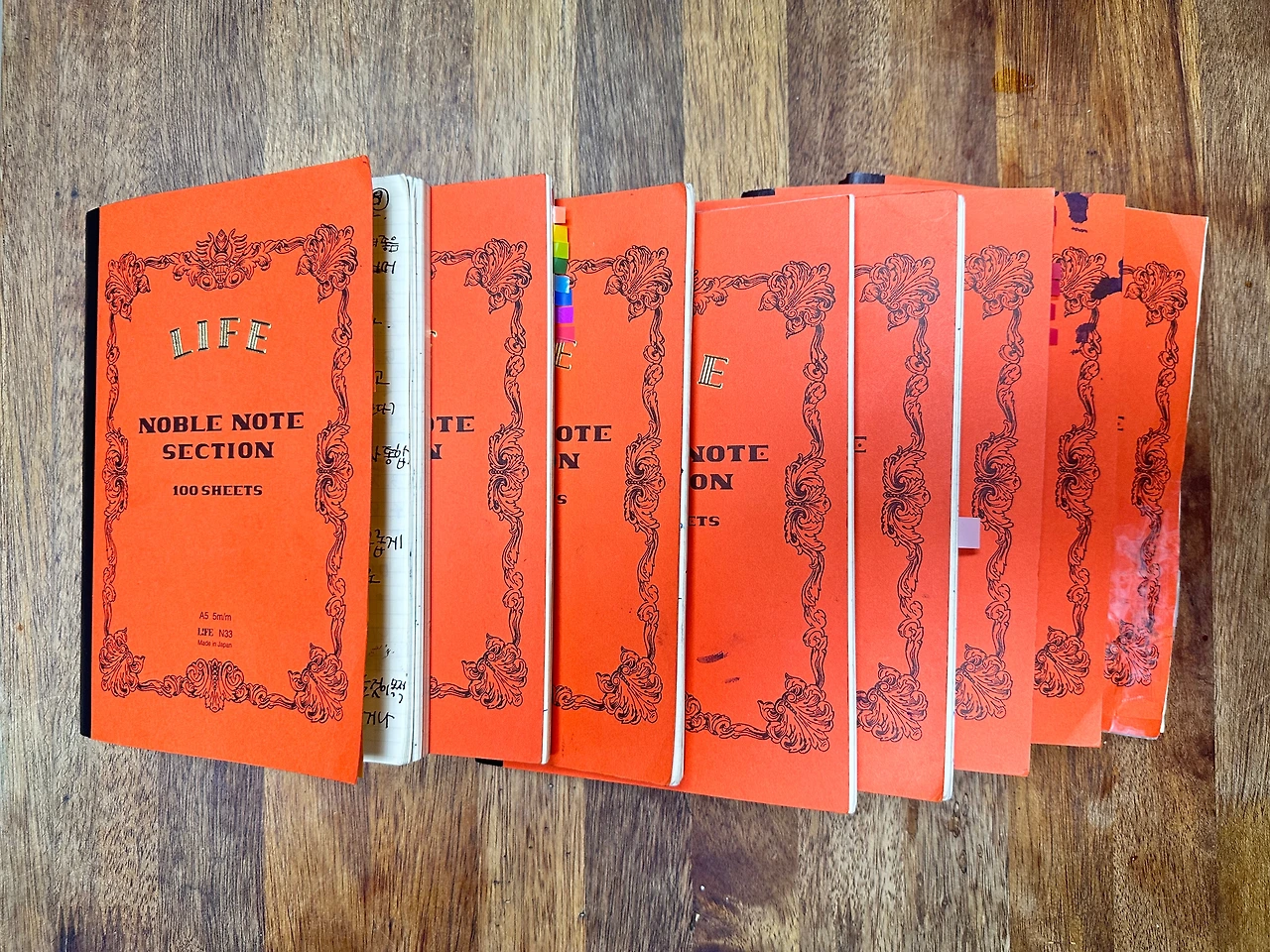 만년필로 쓰기 좋은 일제 노트에 2년 동안 매일 또는 간헐적으로 썼다.