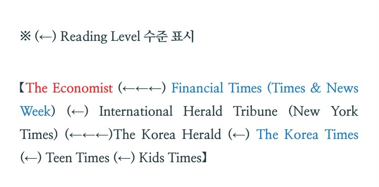 내가 겪어 본 영자신문과 잡지의 독해 난이도 자료를 참고하여 자기에게 맞는 것을 선택하는 방법을 설명한다.