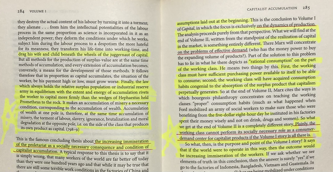 구체적으로 설명하면, 현재 출•퇴근 시에는 David Harvey의 A Companion to Marx’s Grundrisse를, 집에서는 David Harvey의 A Companion to Marx’s Capital과 Ayn Rand의 Atlas Shrugged를 읽고 있다. 앞의 두 권의 책은 자본주의를 체계적으로 분석하고 비판하는 내용이며 Ayn Rand의 저작은 이를 옹호하는 철학소설이다.