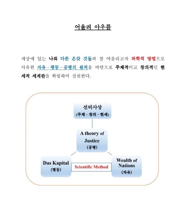 이들을 올바르게 해석하여 나의 삶에 맞게 적용하기 위하여 “어울려 아우름”세계관을 정립한다.
