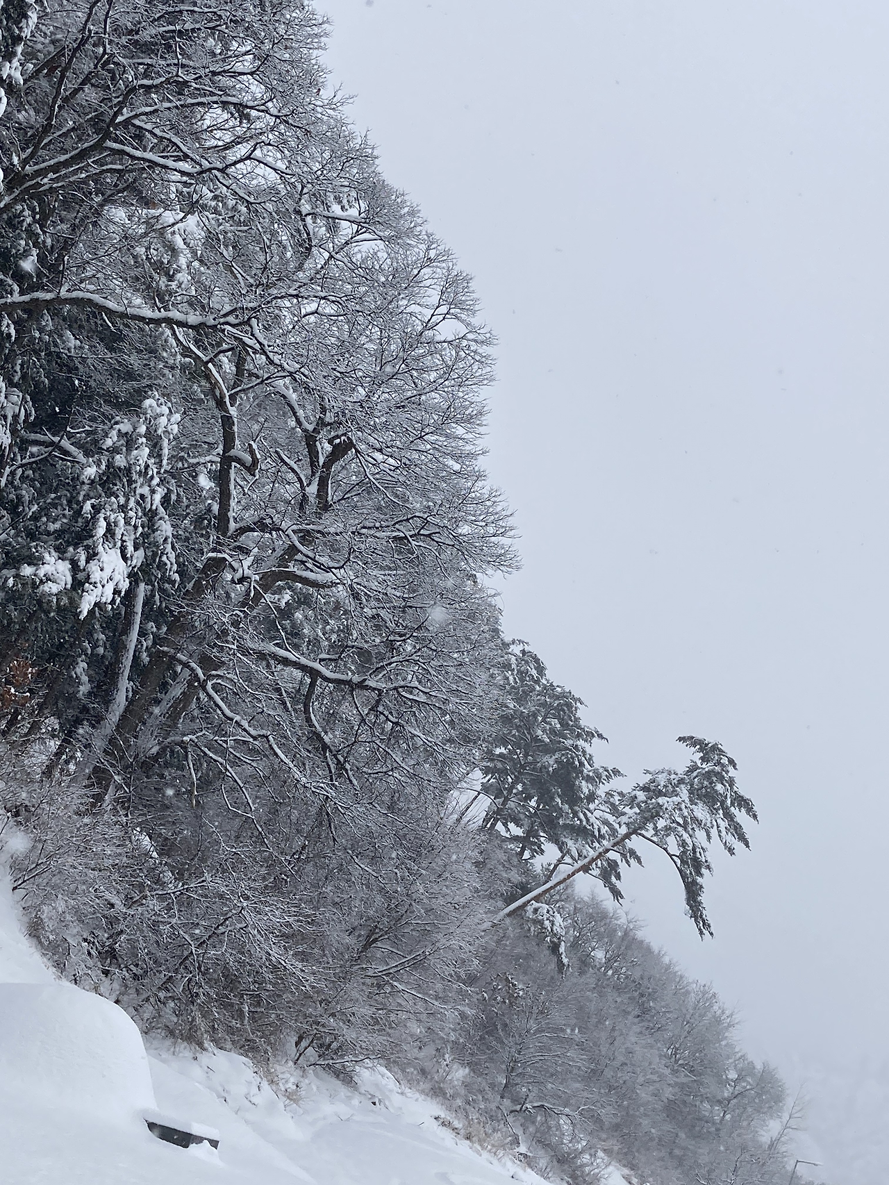 안내에 따라 속도를 확 줄이고 차를 몰았더니 아무런 일도 일어나지 않았다. 다만 집으로 돌아오는 시간이 조금 더 걸렸을 뿐이었다. 어차피 목표점은 정해졌고 집에 가서 특별히 해야 할 중요한 일도 없었기에 라디오에 흘러나오는 노래를 들으며 바깥의 설경을 즐기며 천천히 올라왔다. 평창 휴게소에 들러 사진도 찍고 커피를 마시며 호두과자도 사 왔다.
