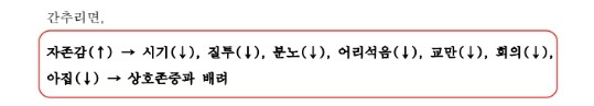 글의 내용이 산만하여 더 이상 논의를 전개하지 않는 대신 우리 사회에서 자존감을 높이는 방법과 관련한 나의 생각을 정리하며 이 글을 마무리한다.