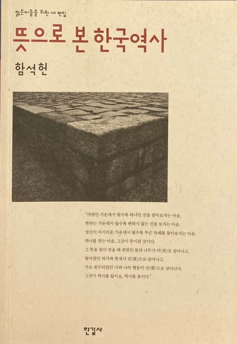 내가 철학을 공부해야 하겠다고 마음먹은 것은 ‘뜻으로 본 한국역사’를 읽고 나서부터다. 이 책은 원효대사, 수운 최제우 선생과 더불어 내가 세상에서 가장 존경하는 사상가 씨알 함석헌 선생의 걸작이다.