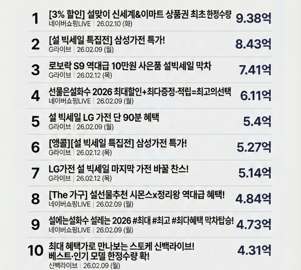 결국 누가 특집전 분위기를 더 잘 살리느냐가 가전 방송의 핵심 포인트라고 생각함.