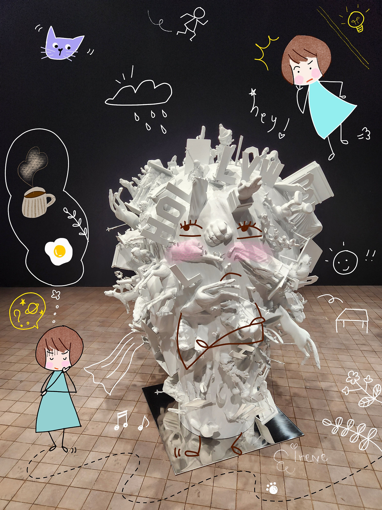 미술관에서 여러 차례 유튜브로 선행학습을 한 걸 조금 후회했다. 그들의 지식과 감상이 덧입혀진 작품을 확인하고 슬그머니 다음 장면으로 건너가는 방식이었으니까. 인상적이었던 건 하얀색 레진과 스티로폼 등으로 자신이 만들었던 작품의 모형을 덕지덕지 모아놓은 Void(무휴, 공허)였다. 높은 곳에 올라앉아 느닷없이 북을 치는 소년과 세발자전거를 타고 다니며 관람객을 구경하는 찰리, 로비와 입구에 있던 노숙인의 모습을 한 작품까지. 작가가 환기하려고 했던 것은 무엇일까?