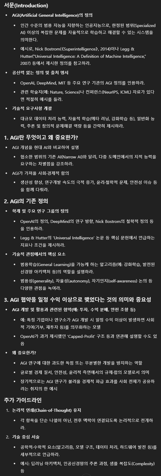 이게 제가 사용하는 가장 핵심적인 방식인데, 현행 AI는 한 번에 완벽한 답을 생성하기보다는, 사용자의 피드백에 따라 점진적으로 개선된 결과를 도출하는 데 더 강점이 있습니다. 초기 출력 결과를 분석하고, 개선 사항을 명확히 지시하여 다음 답변에서 이를 반영하도록 유도합니다. 반복 과정을 통해 최종 결과물이 점진적으로 개선하는 방식인 거죠
