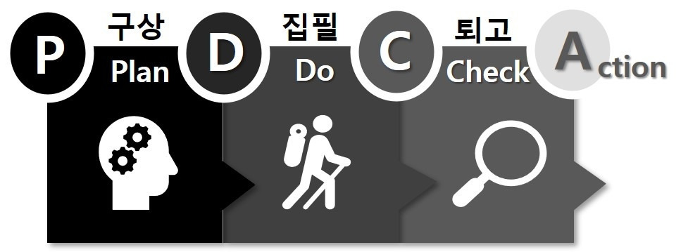 에드워즈 데밍(W. Edward Demming)이 고안한 PDCA사이클을 아시나요? 계획(Plan)-실행(Do)-점검(Check)-개선(Action) 사이클로 일을 하는 프로세스를 의미하죠