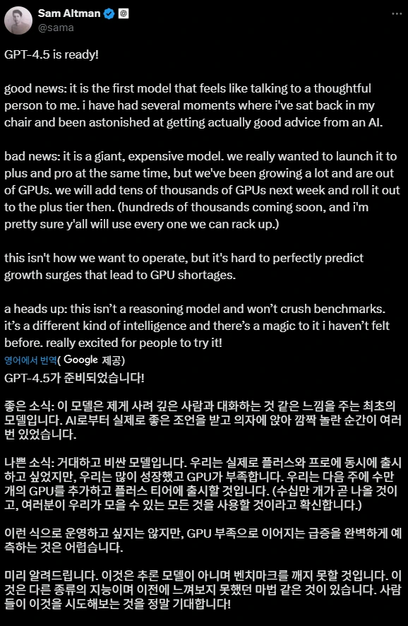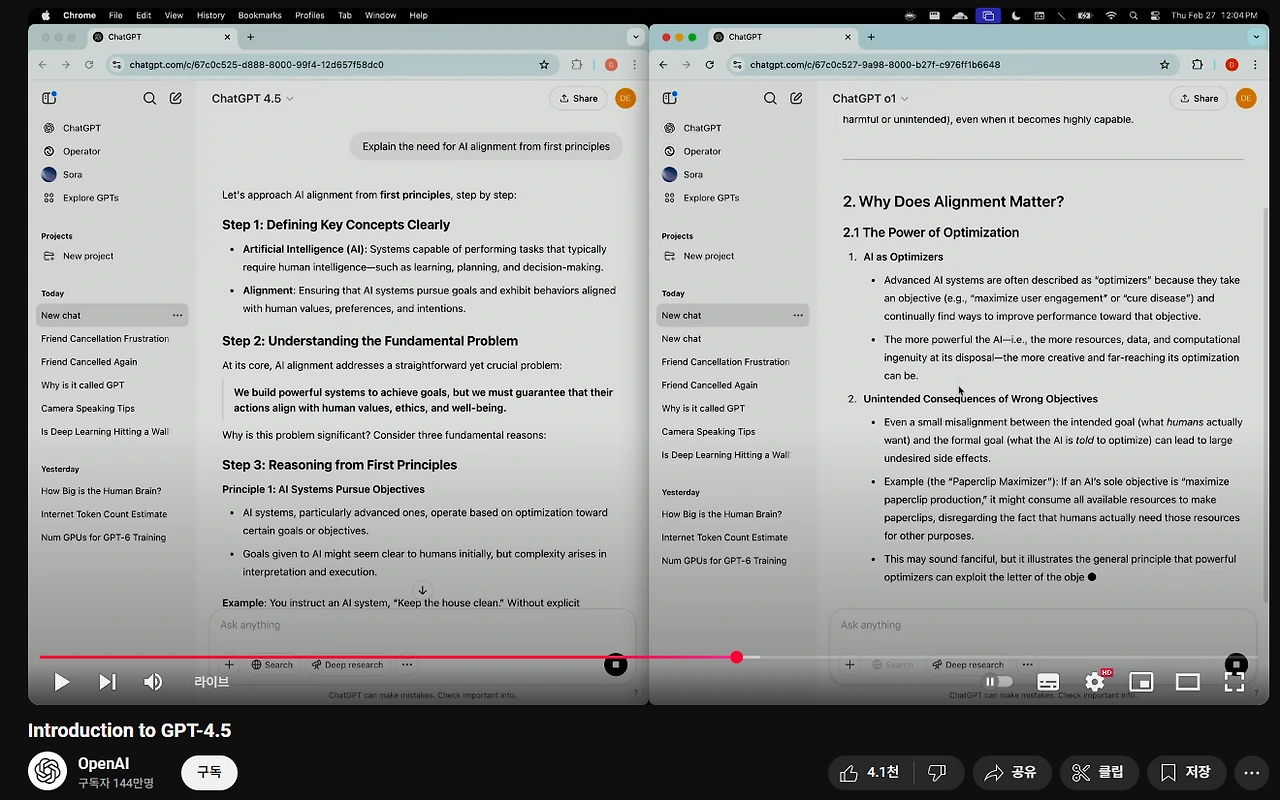 28일 새벽 GPT 4.5의 라이브 방송이 있었습니다. 주된 내용을 봐봅시다.