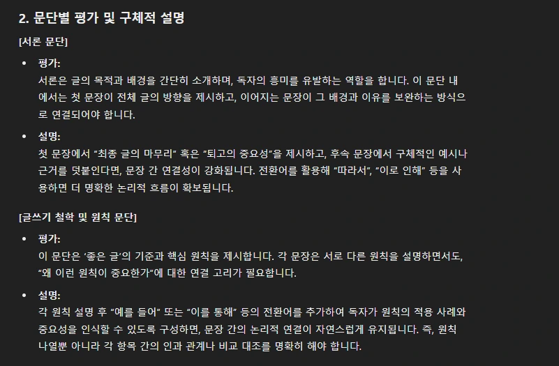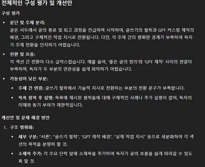 -전체적인 글의 구성을 평가 후 개선안 도출