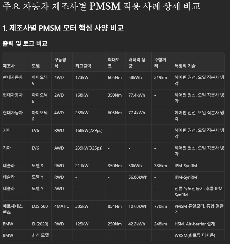 흥미롭게도 요구하지않은 자료조사까지 해왔습니다 각차량이 어떤 모터를 쓰는지 어떤 기술을 쓰는지까지 사실상 요구사항을 완벽히 수행했네요