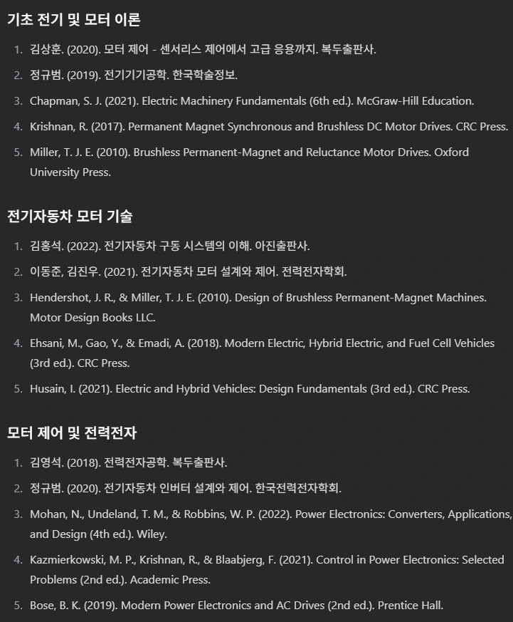 우선 비교군이 있어야겠죠? 제가 최근 전기차 모터에 관한 브런치북을 준비하고 있으니 그 주제와 관련해 목차를 선정하고 관련내용을 조사하라는 명령을 내려봤습니다