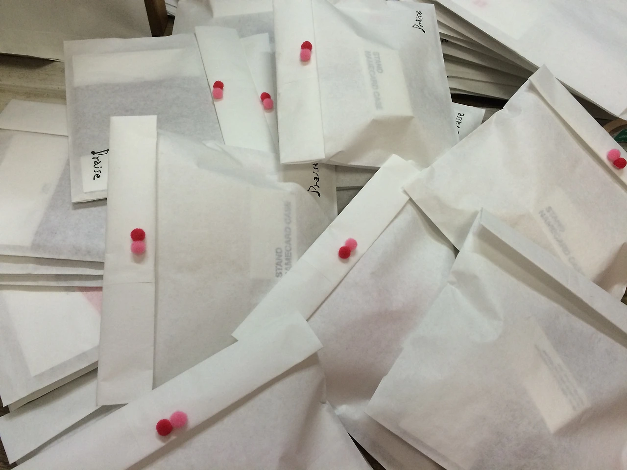 e. 패키징 방울: 아주 쪼그만 털방울 두개를 달았습니다. 엄청나게 귀찮았지만 이 작업으로 12땡쓰가 많이 특별해졌습니다. 짱귀엽죠?