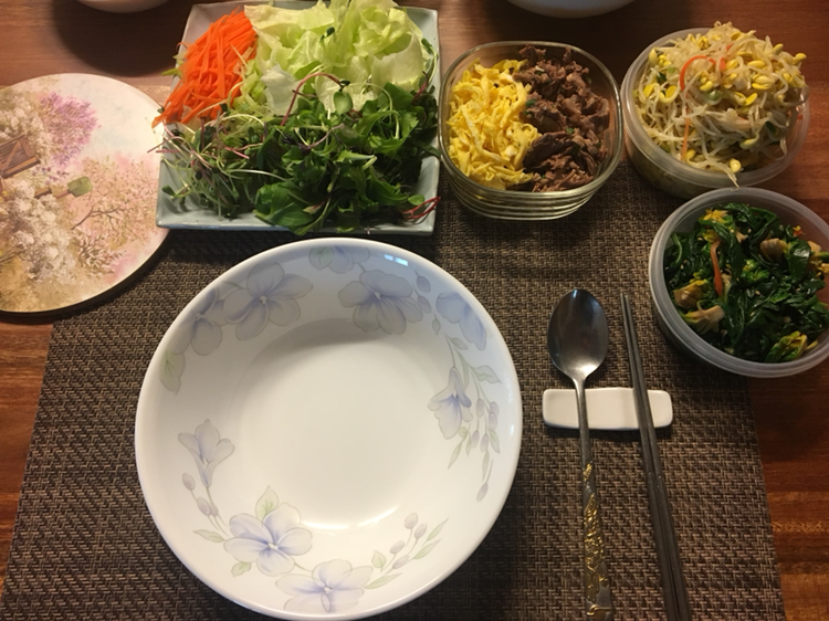 엄마가 신메뉴를 개발했다며, 누가봐도 양식 샐러드로나 먹을 야채를 큰그릇에 잔뜩 뜯어 넣고는 밥과 초장으로 비벼주었다. 꼭 젓가락으로 비벼야 골고루 잘 비벼진다며, 어서 맛을 보라고 보챘다. 먹는 분야는 아주 보수적이라 상상했을 때 어색한 조합인 음식은 입에도 안대는 편인데, 상추나 나물이면 몰라도 양상추에 이런 갖가지 야채에 밥이라니?!