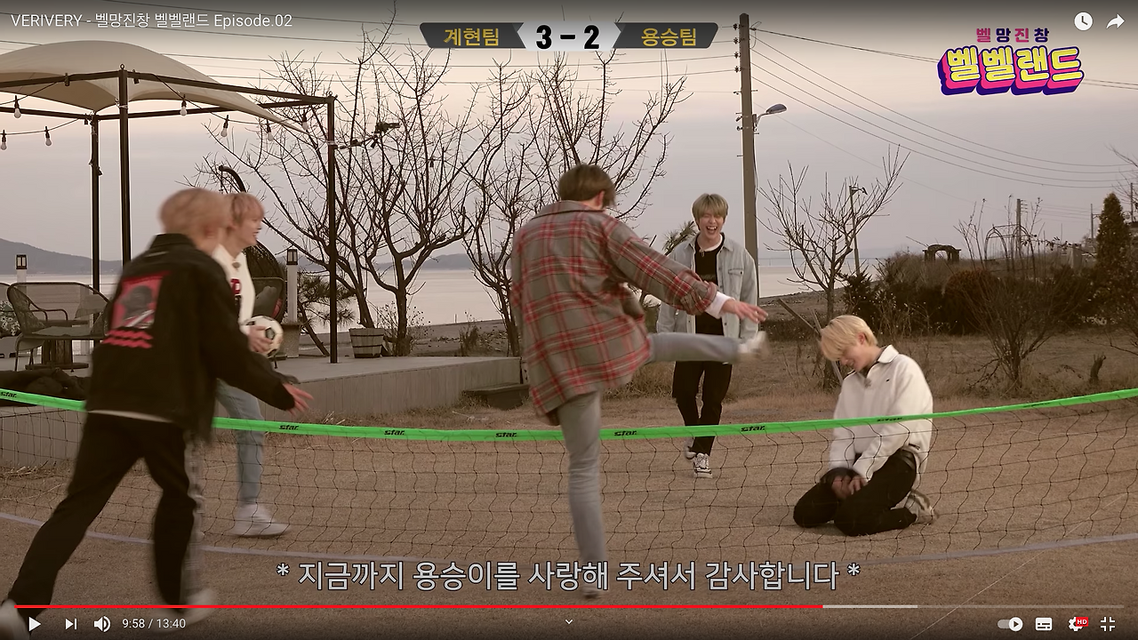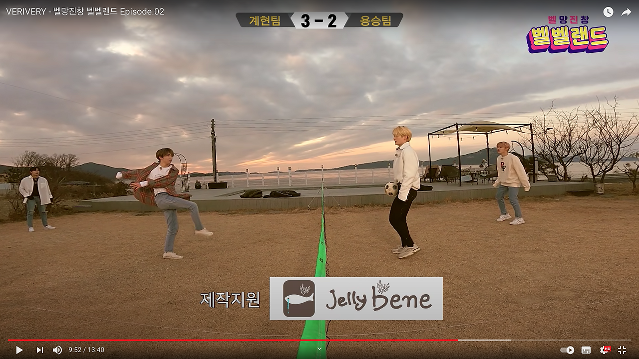 Episode 2편은 썸네일부터 흙바닥과 그물망이 함께 보여 남자 아이돌 그룹의 리얼리티성 콘텐츠 중 하나의 구성으로 자주 등장하는 ‘족구’가 등장하겠음을 예측해 볼 수 있다. 하지만, 베리베리의 평화로운 족구 경기는 9분 45초부터 별안간 등장한 불 대포 슛(..)과 함께 깨지게 된다.