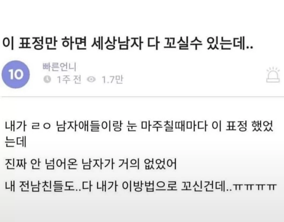 실제 남자가 보았을 때, 이는 꽤나 효과가 있어 보인다(어쩌면 필자도 이미 그렇게 되었을지도). 심리 논문에서도 증명된 안면 피드백 이론을 적용해서 마음속 그 남자를 쟁취해 보자.