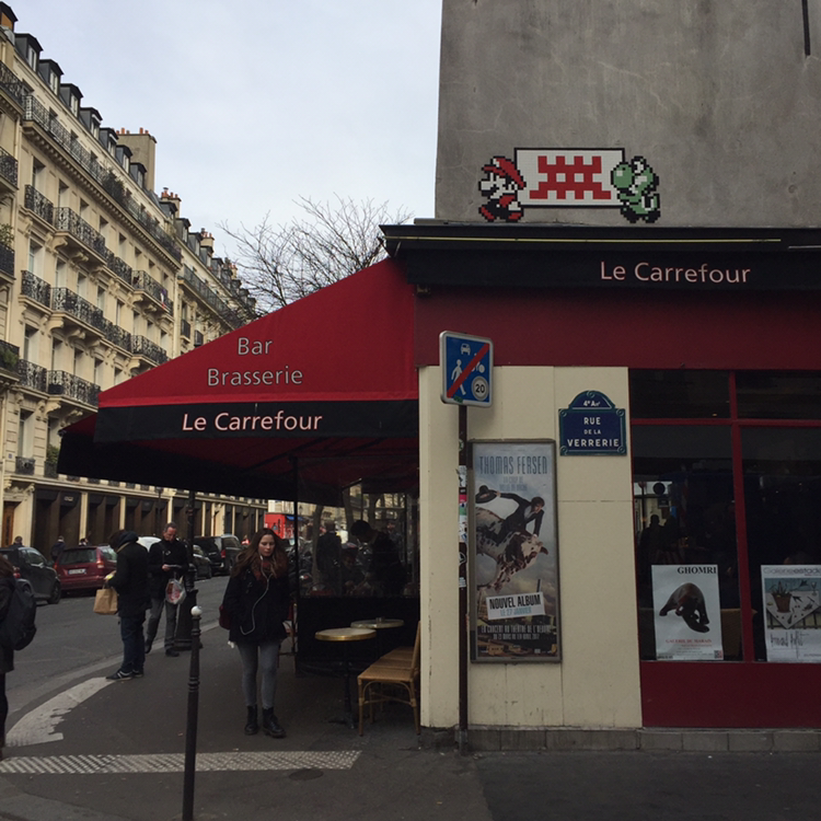 5. 좀 걸었다. 오전의 파리 정취를 만끽하고 싶었던 것도 있고 특별한 목적지가 없기도 하고. 아니, 무엇보다 날이 좋았다 바람이 선선하니 걷는 내내 맘도 좋았다. 따뜻한 날 왔다면 숨막히게 아름다운 풍경들로 가득했을 텐데, 한산한 정취로 위로받았다. 파리 시내 거리나 골목 곳곳에는 스페이스 인베이더가 숨어있다. 스트리트 아트를 찾으며 걷는 것도 꽤나 큰 재미. 골목을 드나드는 사람들에게 작은 기쁨을 줄 수 있다니 요망한 것.