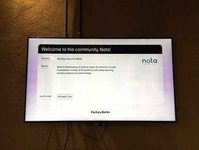 나는 팩토리에서 이루어지는 온라인 행사에 최대한 많이 참여하면서 네트워크를 하나하나 만들었다. 관심 분야의 사람들에게는 슬랙 메시지로 개별적으로 연락해 한 명씩 알아나갔다. 그러던 중 팩토리 입구에 ‘newcomers Nota AI’라는 회사가 새로 팩토리의 일원으로 들어왔다는 것을 알게 되었다. 본사 주소가 Daejeon(대전)이라고 되어 있어 생각해보니, 얼마 전 베를린에 입성했다는 한국의 스타트업 ‘노타’가 팩토리에 둥지를 틀었다는 생각에 반가워 연락을 취했다.