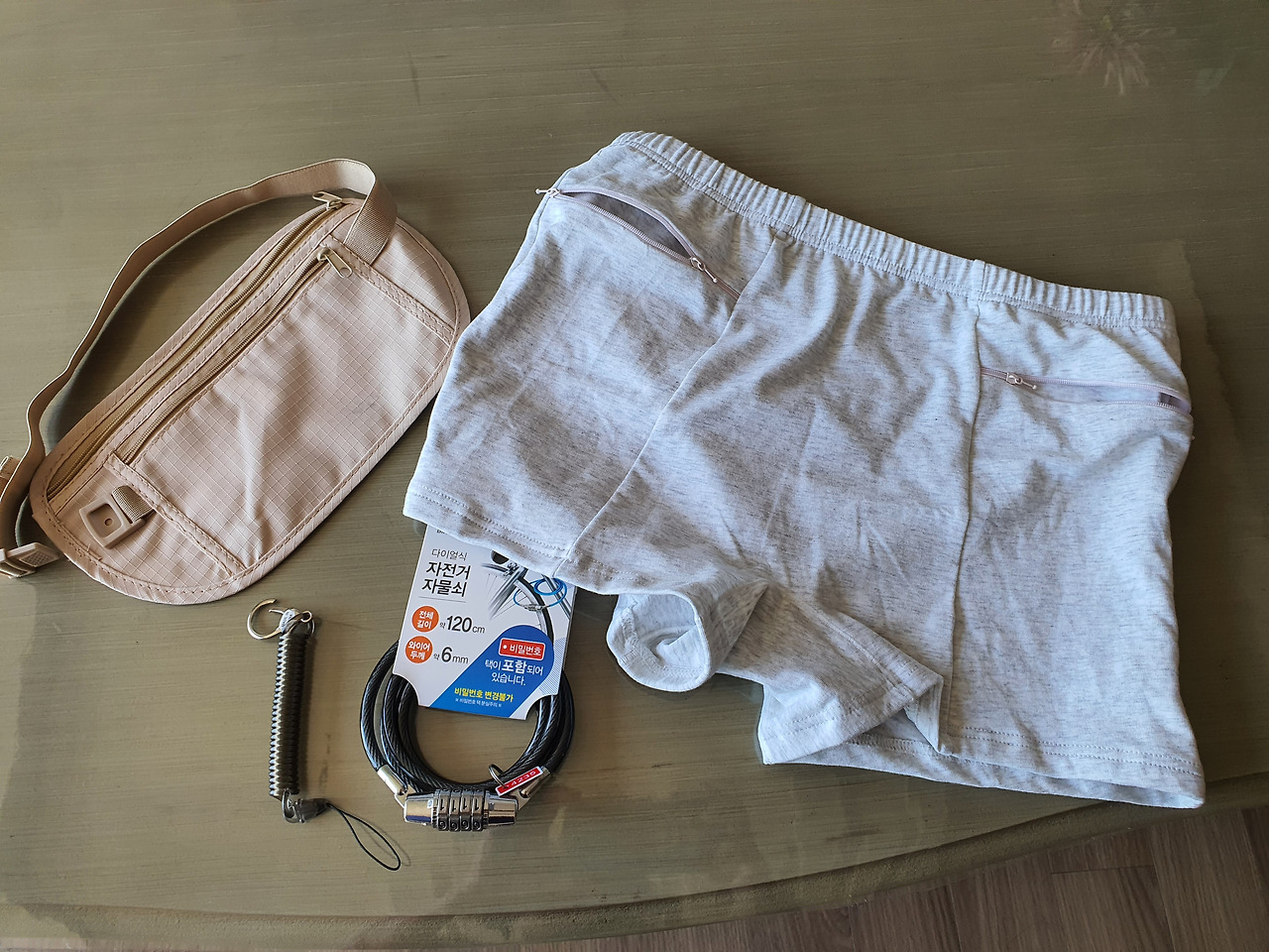 그리고 소매치기의 영향권에 들더라도 다소 방지를 할수 있는 용품도 구비하는게 좋다. 이번 여행을 위해 내가 구입한 도난방지용품은 아래와 같다. 인터넷에서 검색해 주문도 했지만 대부분 다이소에 다있다.